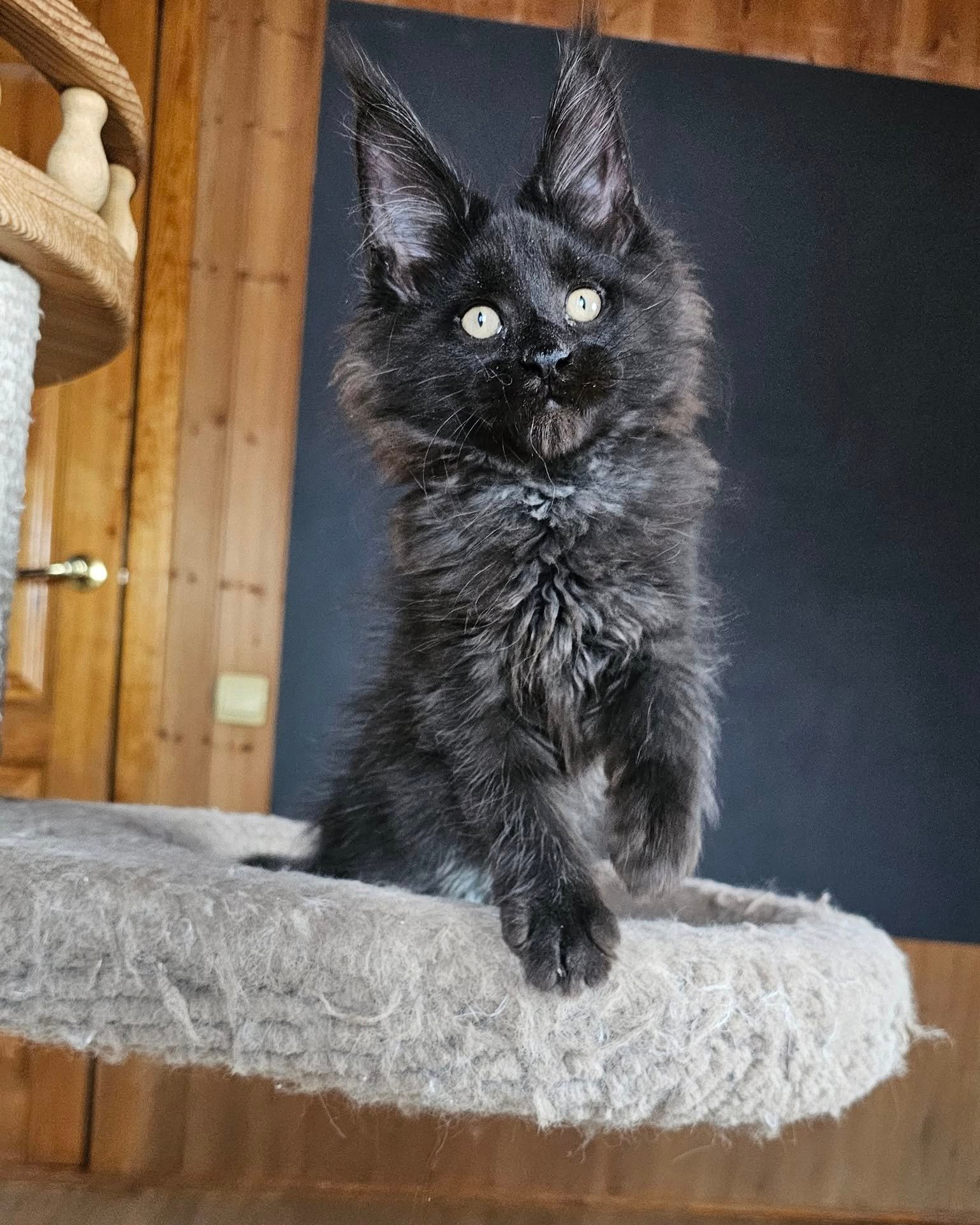 Our adorable Maine Coon kittens are ready to find their loving forever homes. With their distinctive tufted ears, bushy tails, and friendly personalities, these kittens are sure to capture your heart. Our Maine Coon kittens are raised in a loving environment, ensuring they are well-socialized and accustomed to human interaction. They are also provided with the highest quality care to support their health and well-being. We take great pride in maintaining the breed’s standard characteristics, including their large size, robust build, and striking appearance.
